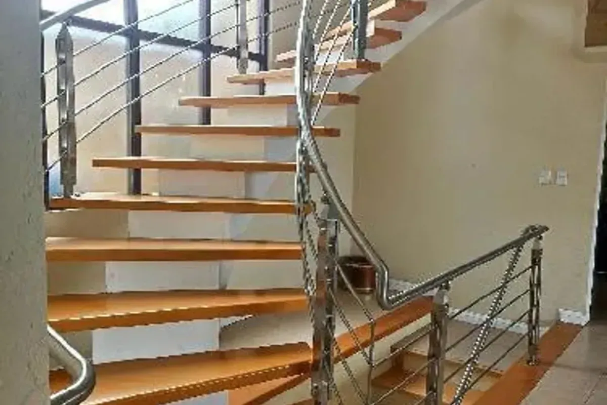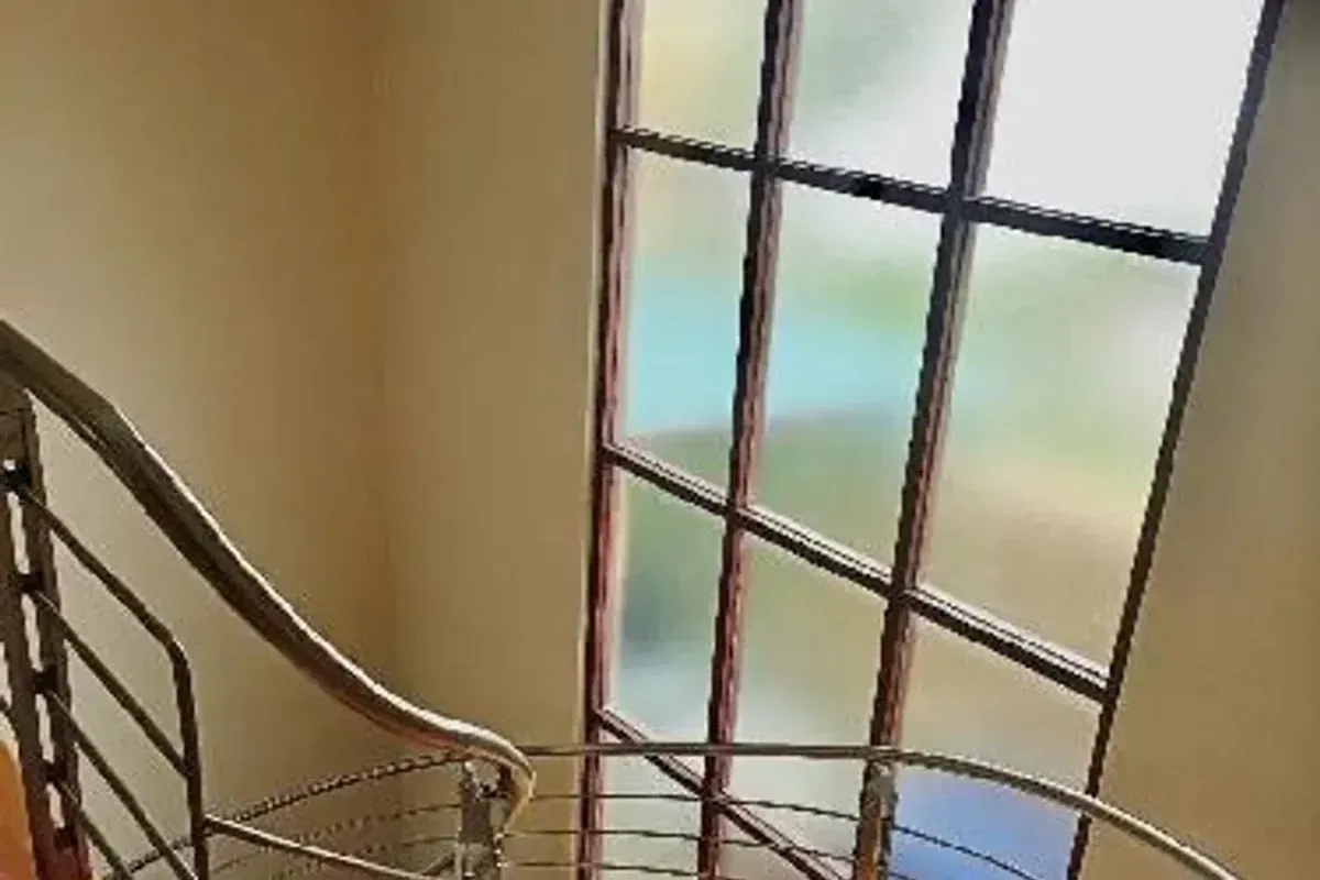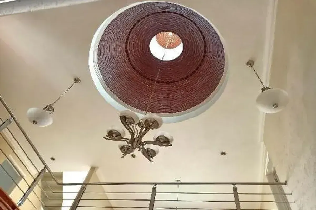 b贸veda catalana, patio de servicio, y elegantes escaleras de madera. En la planta
