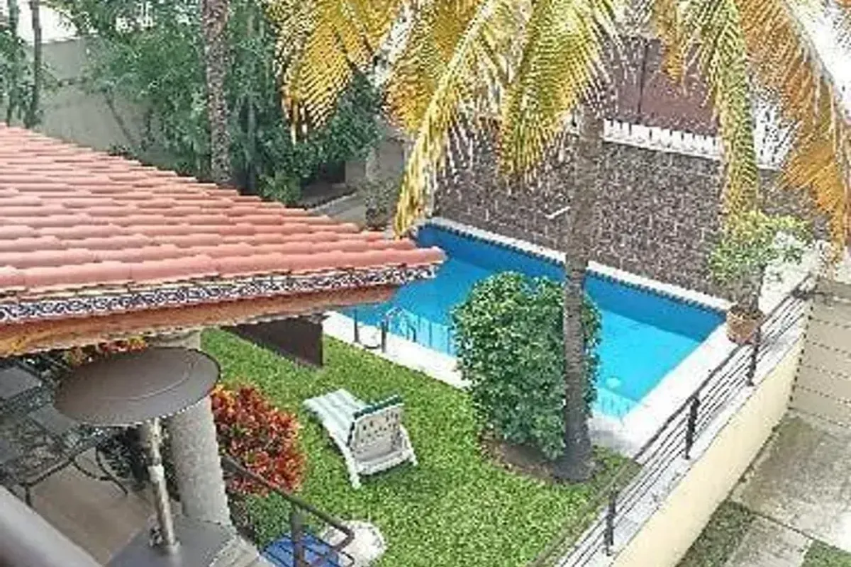 un port贸n el茅ctrico, hermoso jard铆n, alberca equipada, y tres estacionamientos (uno