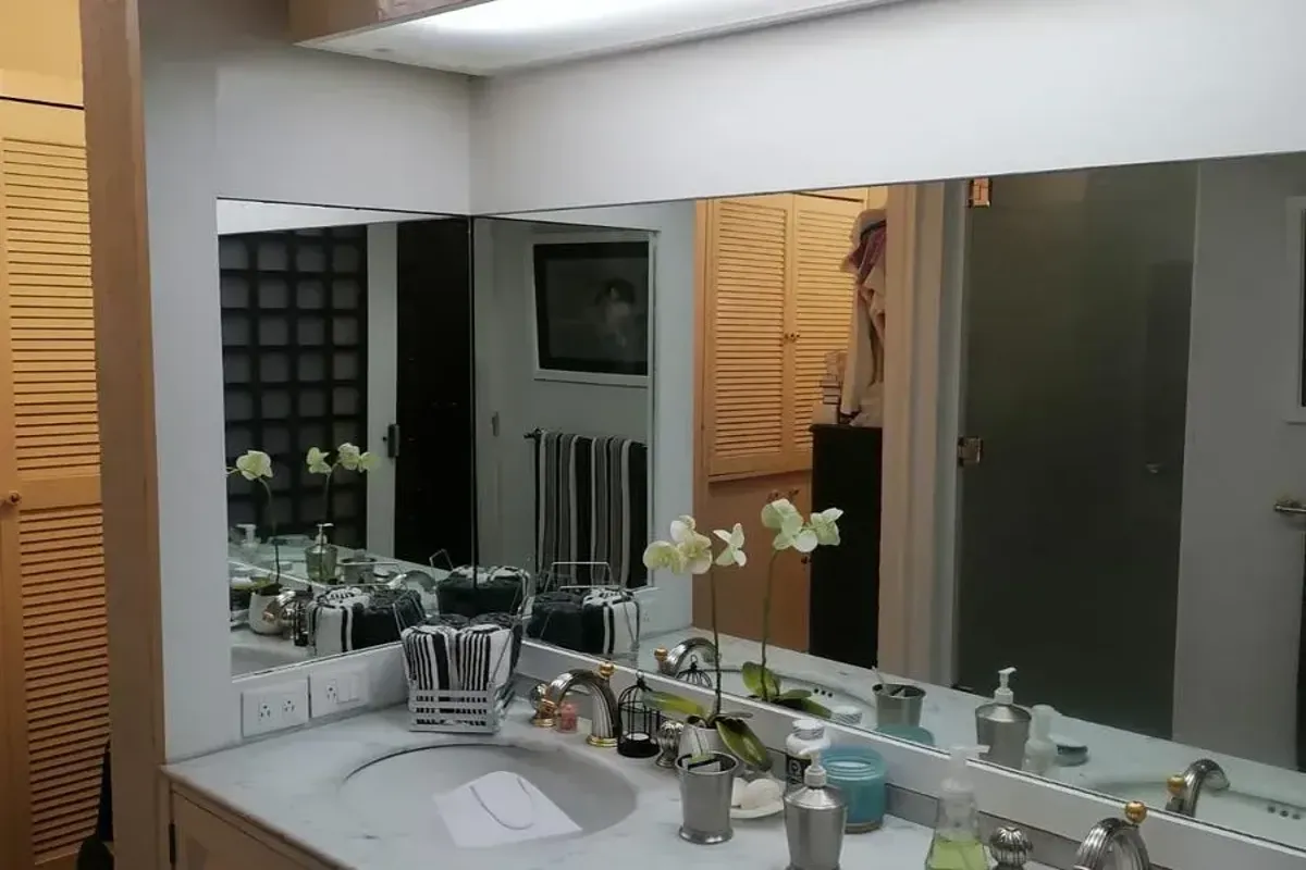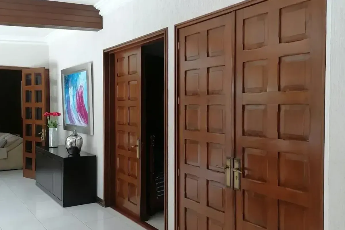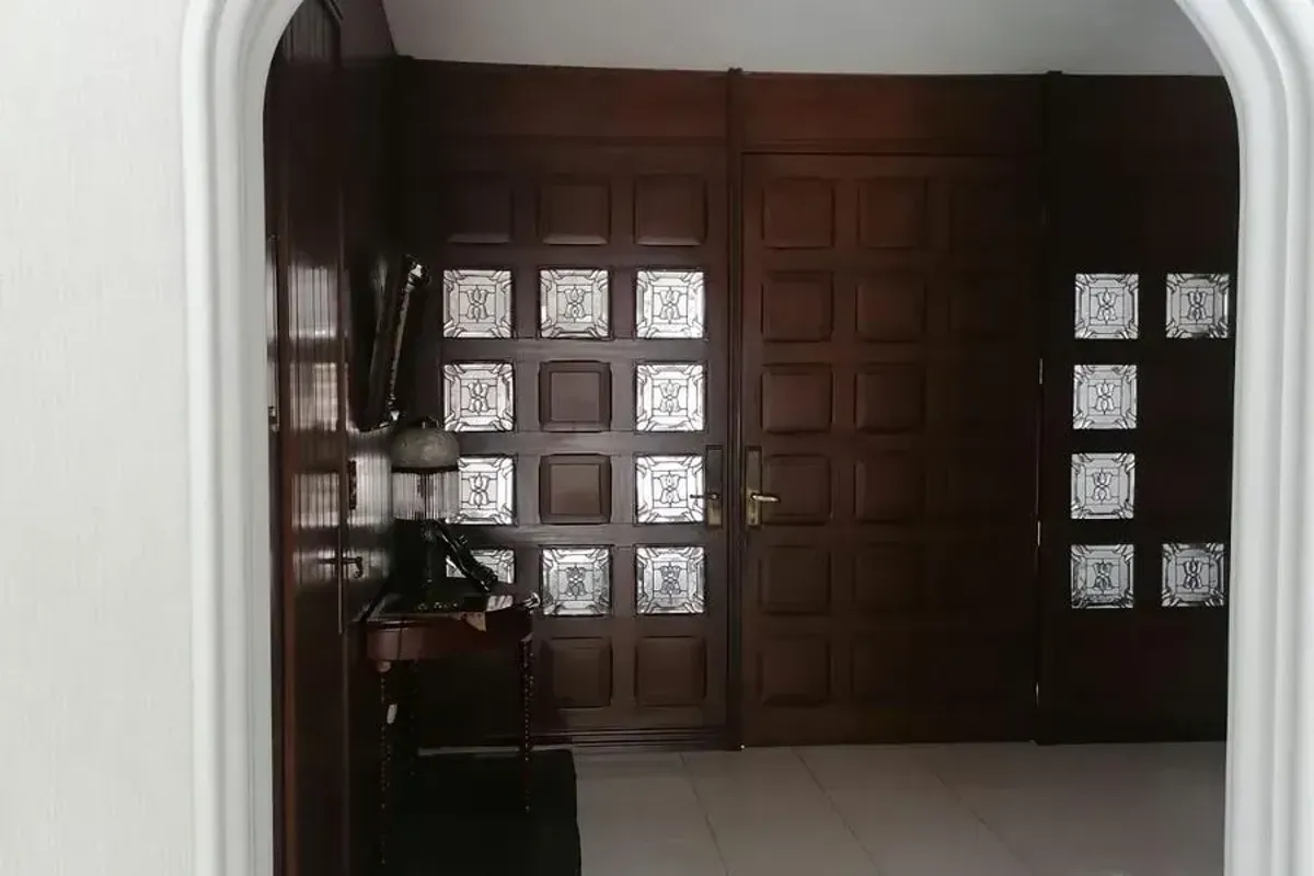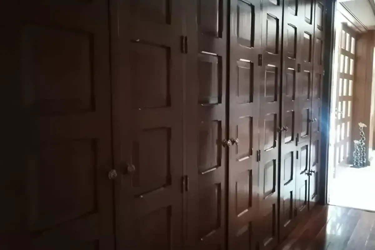 Comedor: Elegante comedor con puertas de madera de caoba y un amplio cl贸set.