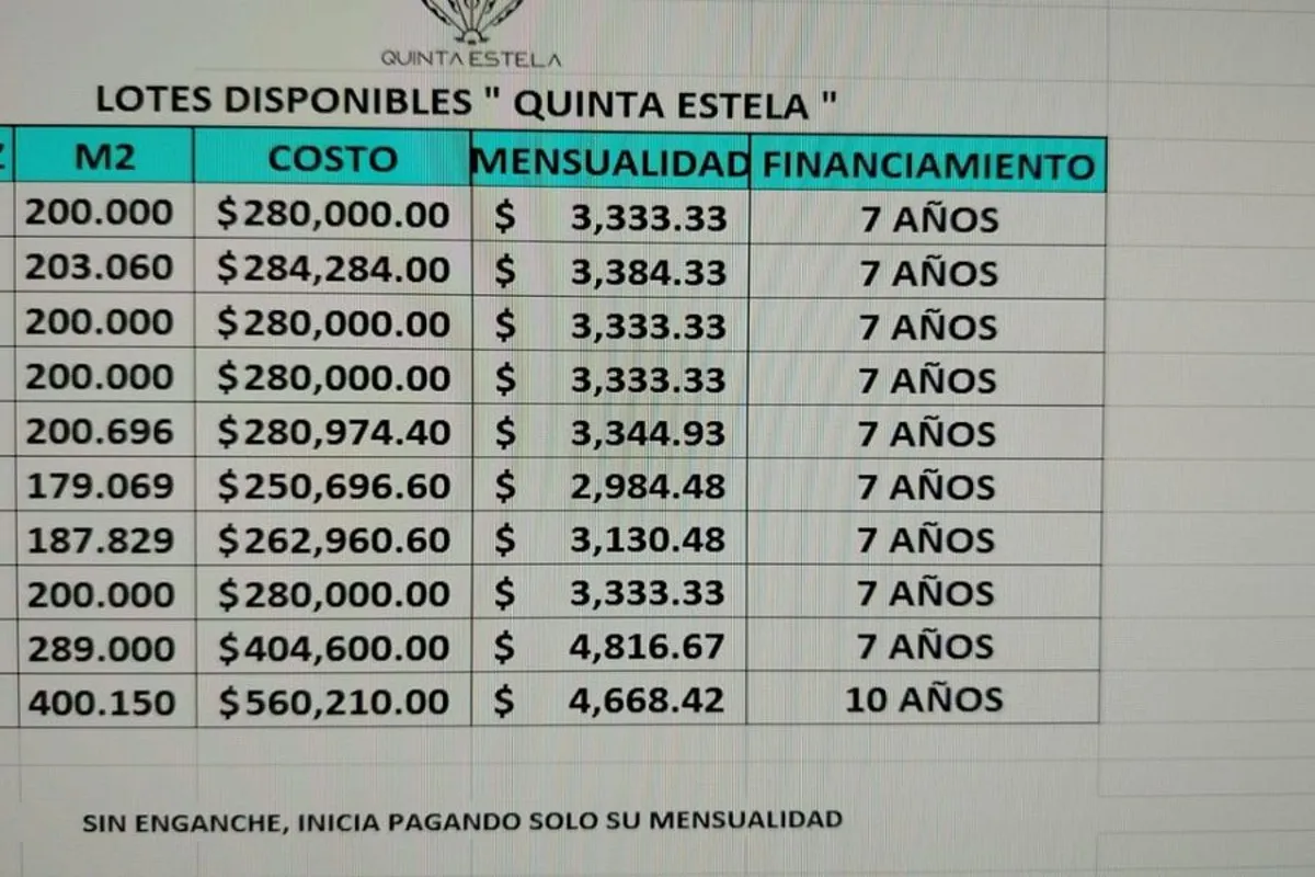 PRECIO POR TERRENO $ 280,000 PESOS